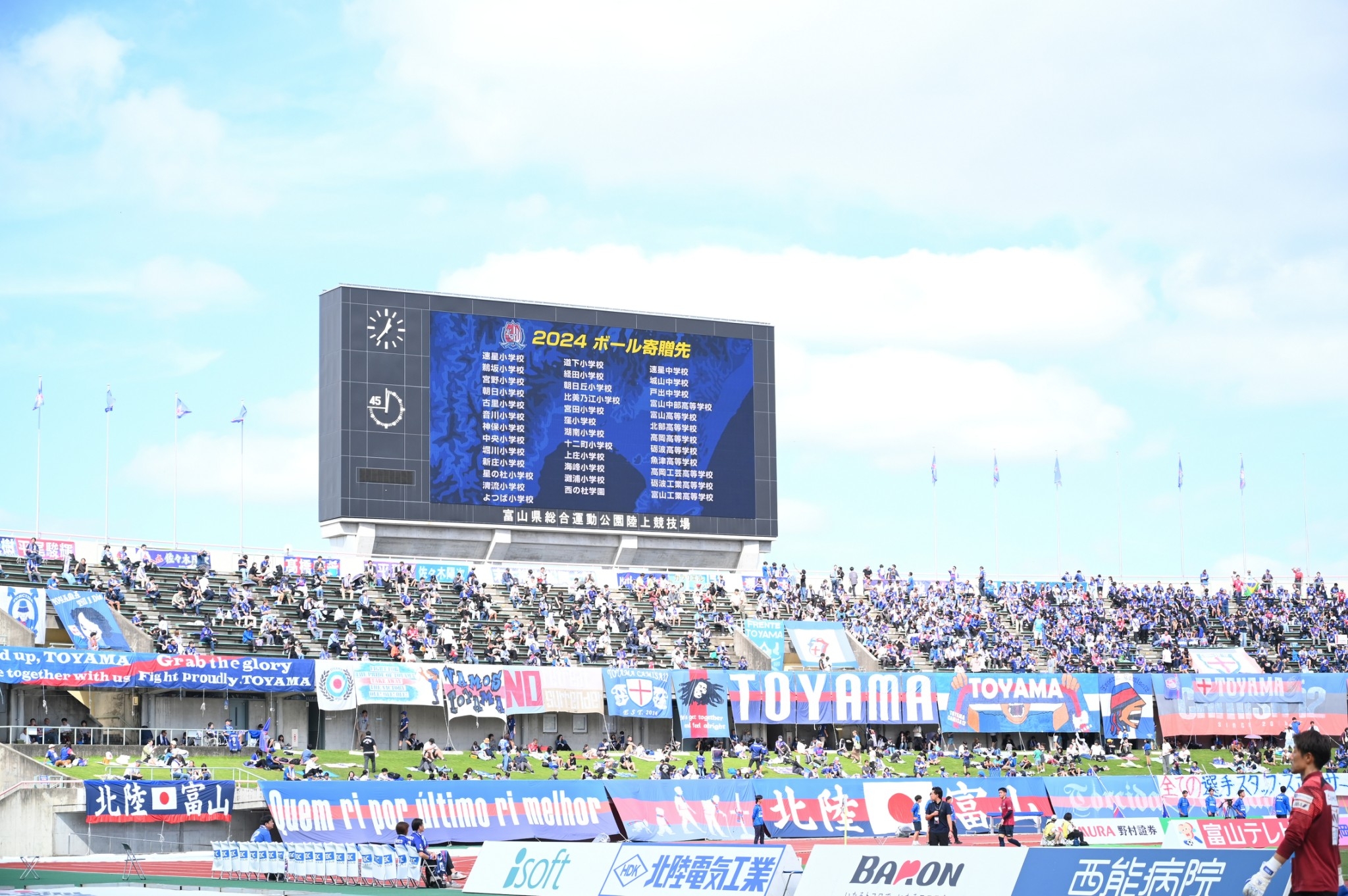 カターレ富山様では、今シーズンのボール寄贈記念イベントとして、寄贈先となる学校の子どもたちを10月6日(日)のFC今治戦にご招待するとともに、カターレ富山ボールパートナーによる記者会見及びセレモニーを実施しました。