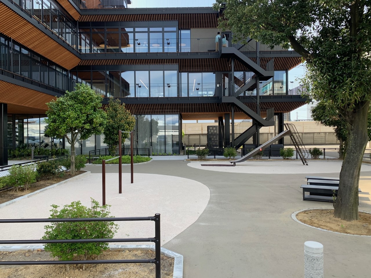 老朽化が進んでいた遊具を新たに更新し、社員だけでなく、近隣住民や訪問者も散策できる憩いの空間としました。