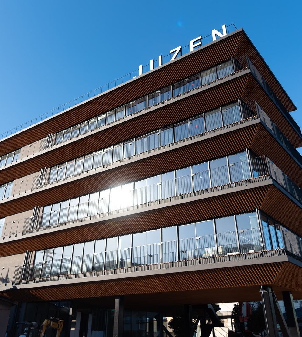 本社屋は「シンカ」をコンセプトとし、自身や周囲と深く向き合える場所(深化)、さまざまな部署の社員の動線が交わる、アイデアの生まれやすい自由な雰囲気の場所(進化)、新しい世界へ視線がシフトしていく開放感のある場所(新化)として建設されました。